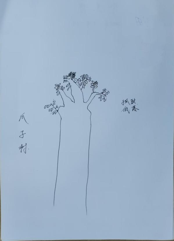 建立安全的咨访关系后,树木人格测试为我们打开了窥探他内心世界的窗口。测试中,树的整体偏下,印证了过去的创伤对他当下的深刻影响;树冠残缺不全,仅以三根“手指状”树干支撑着零星枝叶,暗示其自我意识发展受阻,表达能力受限;而*引人注目的是,这棵树没有根系,与大地毫无连接——这恰是小宇内心状态的隐喻:界限感模糊,既渴望融入群体又恐惧被伤害,如同风中摇曳的孤木,缺乏内在安全基地的支撑,对归属感有着深深的匮乏。与此同时,粗大的树干又透露着他未曾被摧毁的内在力量,即便在孤立无援中,依然顽强地维系着生长的姿态。